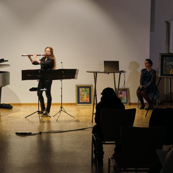 Zusammen mit der Kunstmalerin Carolina Veranen-Phillips lädt die Flötistin und Komponistin Raphaëlle Zaneboni das Publikum zu einem neuen Konzert-Erlebnis ein: Luft - Licht - Klangbild.