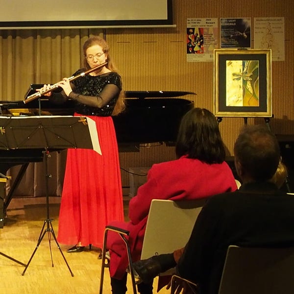 Zusammen mit der Kunstmalerin Carolina Veranen-Phillips lädt die Flötistin und Komponistin Raphaëlle Zaneboni das Publikum zu einem neuen Konzert-Erlebnis ein: Luft - Licht - Klangbild.